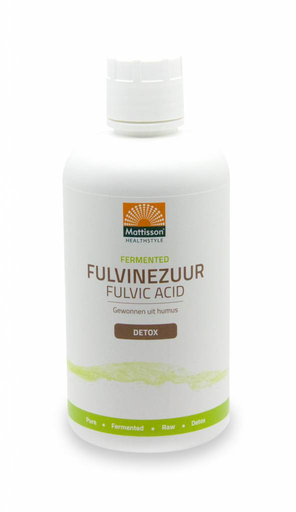 Fulvinezuur wordt veel gebruikt als Detox en gewonnen uit een humuslaag die stamt uit de krijttijd en is naar schatting 40 miljoen jaren oud. De biochemische structuur van humusverbindingen bestaat uit ingewikkelde groepen moleculen. Fulvinezuur wordt geproduceerd door een maandenlang natuurlijk gistingsproces, zonder gebruikmaking van verhitting of chemicaliën. Dit gistingsproces zuivert de fulvine van de mineralen en metalen die zich van nature binden aan fulvine. De transparante en goudgele kleur van de vloeistof zijn kenmerkend voor de zuiverheid van het product. Fulvinezuur smaakt neutraal en kan makkelijk worden gemengd met water of vruchtensap.Gebruik en bewaren