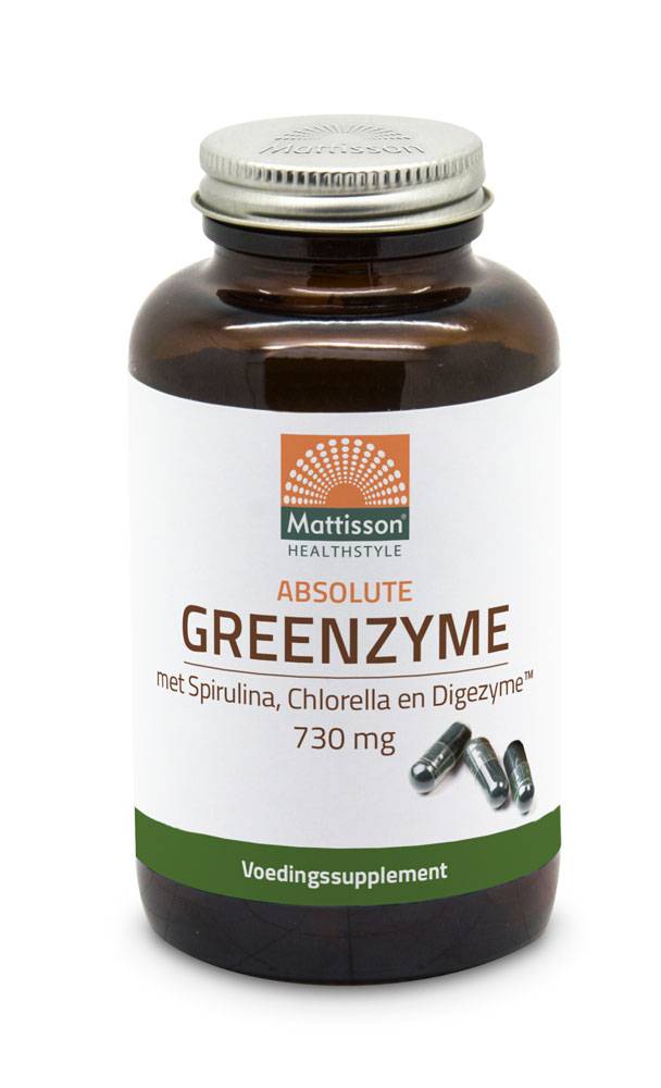 GreenZyme is samengesteld uit vezels, de fytonutriënten Spirulina en Chlorella, een enzymen-complex en het probioticum Lactospore™.Gebruik en bewaren 1-2 x daags 1 capsule tijdens of na de maaltijd. De aanbevolen dosering niet overschrijden. Capsules met water innemen. Koel, droog en afgesloten bewaren. Buiten bereik en zicht van jonge kinderen houden. Een voedingssupplement is geen vervanging van een gevarieerde voeding. [productinformatie] Ingredienten 27,40% Inuline, 27,40% Bethaíne HCL, 13,70% Spirulina, 13,70% Chlorella, 13,70% Bromelaïne, 2,05% Lactospore, 2,05% Digezyme. Overige ingrediënten (hulpstoffen): gelatine capsule. Chlorella en spirulina kunnen in uitzonderlijke gevallen een allergische reactie veroorzaken. [voedingswaarden]